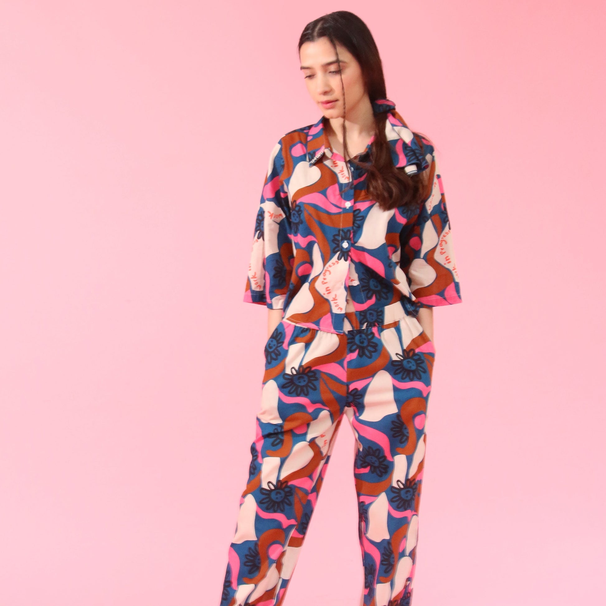 Model is 5‘5.5” wearing a size M in both shirt and pant